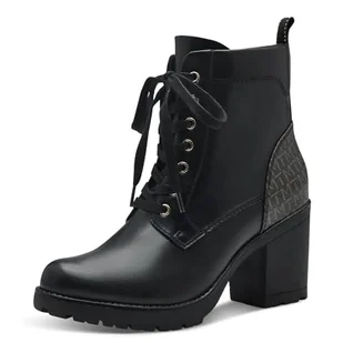 MARCO TOZZI Damskie botki z obcasem ze sztucznej skóry do sznurowania, czarny Comb, 39 EU