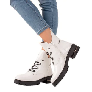 NEWS 24BT26-7403 workery damskie botki ocieplane na zimę białe