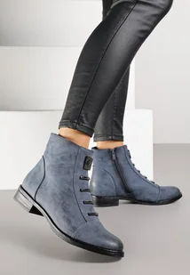 Niebieskie Botki Trzewiki z Metalicznymi Klamrami Asanella