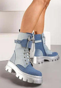 Niebieskie Traperki na Platformie z Błyszczącymi Sznurówkami Zerkkia