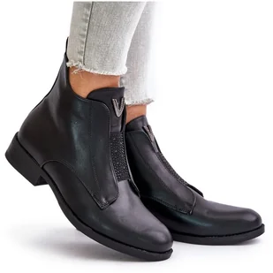 Niskie Botki Damskie Na Płaskim Obcasie Ocieplane Czarne S.