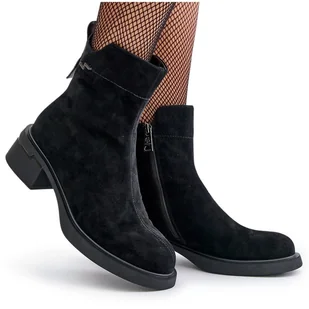 Ocieplane Botki Damskie Z Naturalnego Zamszu Na Zamek Czarne Vinceza 66696