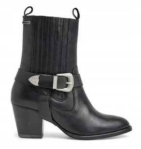 Pepe Jeans Czarne Botki na Słupku z Klamrą Skórzane 37 Awe