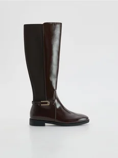 Reserved - Kozaki z ozdobnym paskiem - mahoniowy