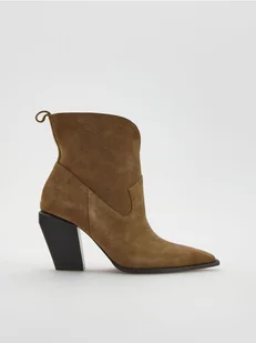 Reserved - Skórzane botki na obcasie - brązowy