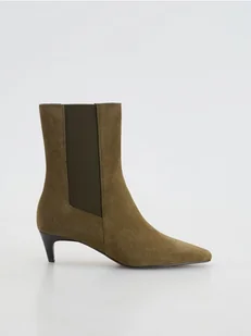 Reserved - Zamszowe botki na obcasie - ciemnozielony