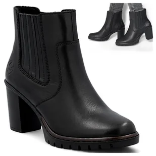 Rieker Botki Damskie SKÓRZANE Wygodne na Klocku Eleganckie Modne Czarne Zamek 38