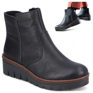 Rieker Botki Damskie Zimowe Trzewiki Ocieplane Wygodne z Zamkiem Czarne 39