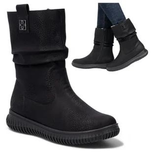 Botki Damskie Zimowe Trzewiki Ocieplane Wsuwane Wygodne z Zamkiem Rieker 74283-00 Czarne [o_param|Rozmiar]