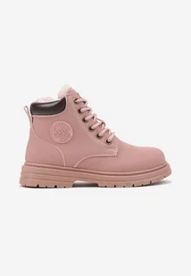Różowe Casualowe Botki Traperki na Płaskiej Podeszwie Nelabria