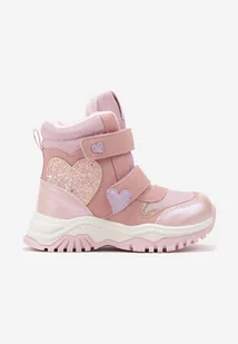 Różowe Płaskie Botki na Rzep Ozdobione Sercami Verielle