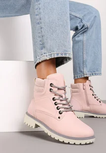 Różowe Płaskie Klasyczne Traperki ze Sznurowaniem Lobanne