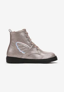 Różowe Sznurowane Botki Ozdobione Brokatem i Motywem Skrzydła Anioła Reshini