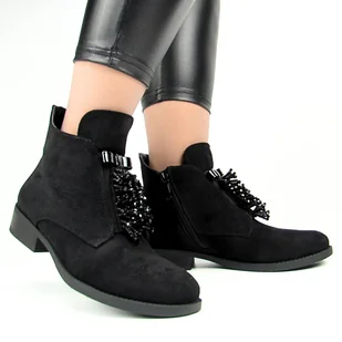 S.Barski HY42-715 Botki damskie ocieplane eleganckie czarny zamsz