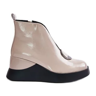 S. Barski Lakierowane Botki Na Koturnie Ocieplane D&A MR880-136 Beżowe beżowy. Sprawdź na butymodne.