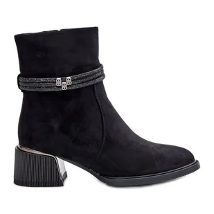 S. Barski Ocieplane Botki Damskie Na Niskim Obcasie Z Ozdobnymi Paskami D&A MR880-027 Czarne. Sprawdź na butymodne.