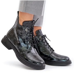 . 36-23,5/37-24,5/38-25/39-25,5/40-26cm S. Barski Skórzane Lakierowane Botki Damskie Ocieplane Na Zamek D&A LZ