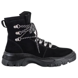 Modne, sznurowane botki na platformie poleca producent ButyModne. . Buty wykonane są ze skóry ekologicznej w kolorze czarnym. Mają 5 cm, bieżnikowaną platformę. Miękka cholewka jest wysoka za kostkę. Biało-czarne długie sznurówki to dodatkowa ozdoba buta, którą można fantazyjnie wiązać.
