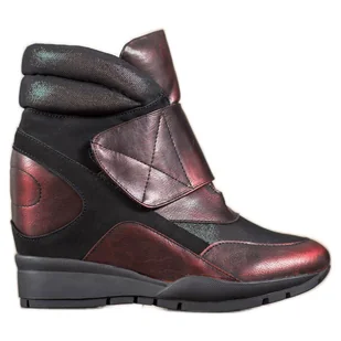 Sneakersy marki Sergio Leone to nowoczesne buty damskie, które przyciągają wzrok niecodziennym designem. Sneakersy w kolorze czerni i czerwieni pięknie się prezentują i są wyjątkowo modne. Zostały wykonane z materiału tekstylnego, posiadają ukrytą koturnę i boczny zamek. Nosi się je przyjemnie i komfortowo. Sergio Leone Sneakersy Na Rzep czerwone.