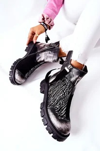 Skórzane Botki Sztyblety Maciejka Czarno-Białe 05137-21-37