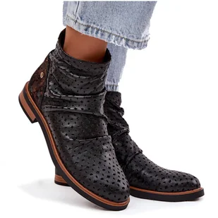 Skórzane Botki Z Ażurowym Wzorem Maciejka 05922-01 Czarne-37