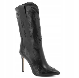 Skórzane Czarne Botki Kowbojki Na Szpilce Carinii B9360 R.39