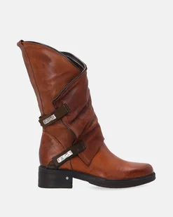 Botki damskie wykonane z naturalnej skóry w brązowym odcieniu z delikatnym efektem postarzenia. Model na stabilnym, niskim obcasie z wygodną podeszwą, odpowiedni do codziennego noszenia. Luźna cholewka ozdobiona dwoma paskami z metalowymi klamrami na magnes nadaje obuwiu nowoczesny charakter. klamry na magnes suwak z boku wywinięta cholewka płaska, antypoślizgowa podeszwa z niskim obcasem wyściółka z naturalnej skóry