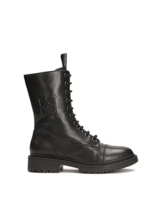 <p><strong>Trzewiki </strong>z wysoką cholewką to praktyczny fason na sezon jesienno-zimowy. Płaska podeszwa, sznurowanie oraz zamek błyskawiczny zapewniają komfort, oraz wygodę użytkowania. Obuwie wykonane jest z wysokiej jakości <strong>skóry licowej</strong>, która cechuje się dużą wytrzymałością i estetycznym wyglądem. Uwagę przykuwa nakładany nosek oraz wypukły, tłoczony monogram na cholewce. </p> <ul> <li>Wyściółka z miękkiej owczej skóry se