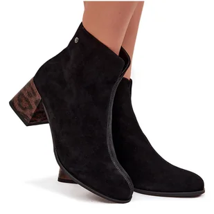 Skórzane Zamszowe Botki Damskie Na Słupku Maciejka K7202-01 Czarne -41