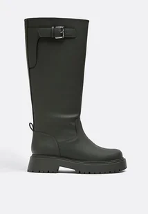 Stradivarius Płaskie botki z efektem gumy Khaki 36
