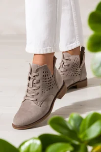 Szare botki damskie ażurowe z wycięciami sznurowane Casu JW25X15-T