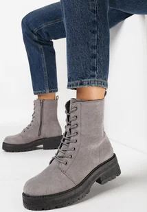 Szare Botki na Grubej Podeszwie z Sznurowaniem Eterna