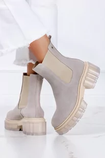 Szare botki na platformie z gumkami po bokach POLSKA SKÓRA Casu 30328-40
