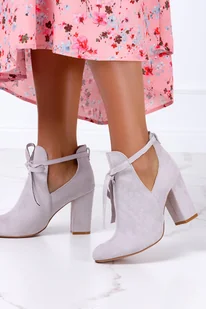 Szare botki na słupku damskie z ozdobnym wiązaniem Casu G22X8-G-36