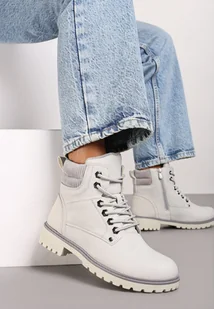 Szare Płaskie Klasyczne Traperki ze Sznurowaniem Lobanne