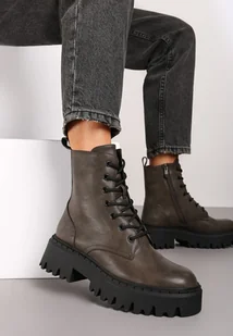 Szare Sznurowane Botki na Platformie w Stylu Workerów Sairene
