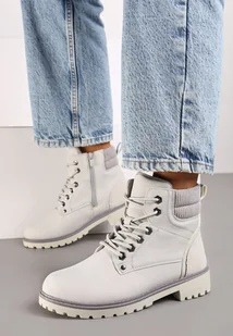 Szare Sznurowane Casualowe Traperki na Płaskiej Podeszwie Relobia