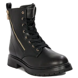 Tommy Hilfiger Botki Damskie Czarne Prezentujemy klasyczne trzewiki marki Tommy Hilfiger, które łączą w sobie modny styl i wygodę. Cholewka wykonana została z czarnego wysokogatunkowego tworzywa. Wnętrze butów to miękka tkanina. Masywna traperowa podeszwa wykonana z wysokogatunkowego tworzywa gwarantuje odpowiednie wsparcie dla stóp i redukuje zmęczenie podczas długiego spaceru. Model ten jest wyposażony w sznurowadło oraz dwa suwaki.