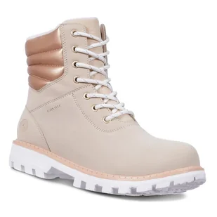 Beżowe botki skórzane na platformie damskie trapery sznurowane PRODUKT POLSKI Casu 60273