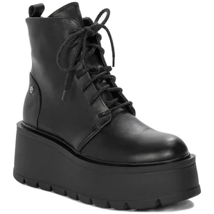 Trzewiki damskie Maciejka Czarne Lico Prezentowane trzewiki damskie wykonane zostały z naturalnej skóry licowej w czarnym kolorze. Botki posiadają niezwykle ciekawie skrojoną cholewkę. Nosek buta ma kształt okrągły. Praktyczne zapięcie na zamek błyskawiczny po wewnętrznej stronie buta umożliwia szybkie i łatwe zakładanie oraz zdejmowanie obuwia, a sznurowadła pozwalają idealnie dopasować cholewkę do potrzeb. Wnętrze oraz wkładka wyściełane są przyjemną w dotyku, miękką tkaniną.