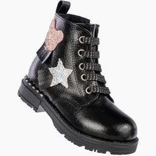 Trzewiki Dziecięce Botki Ocieplane Na Zamek Zimowe Czarne Navy Dot 22-61060BK1 Czarny 23 Buty marki Navy Dot to modne czarne trapery dziecięce z lakierowanej...