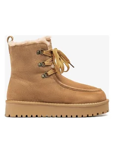 Skórzane botki "Friends" w kolorze jasnobrązowym - zapięcie: sznurowanie - noski: zaokrąglone - wyściółka: ogrzewająca wyściółka - dookoła gumowanie - podeszwa: profilowana