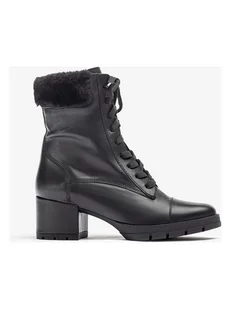 Skórzane botki w kolorze czarnym - zapięcie: sznurowanie z bocznym suwakiem - noski: zaokrąglone - zapiętki: wzmocnione - skórzana wkładka: tak - forma obcasa: blokowy - podeszwa: profilowana