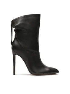 <p><strong>Czarne botki</strong> osadzone na wysokiej, smukłej szpilce stanowią kwintesencję kobiecości i elegancji. Wsuwana cholewka wykonana z gładkiej <strong>skóry licowej</strong> posiada oryginalny krój, który dodaje obuwiu niepowtarzalnego wyglądu. Na jej tyle umieszczony jest pasek z napą, który efektownie ją "marszczy". Zgrabne, kusicielskie botki sprawią, że każda kobieta poczuje się w nich wyjątkowo i bardziej pewna siebie. </p> <u