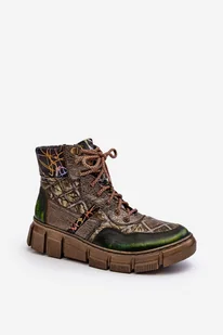 Wzorzyste Botki Damskie Skórzane Maciejka 06145-24 Oliwkowe-38