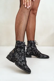 Zamszowe Wzorzyste Botki Na Płaskim Obcasie Maciejka 06391-01 Czarne-38