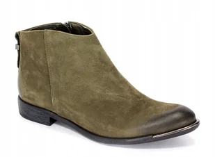 Zielone botki Carinii B3707-I43 skóra nubuk damskie płaski obcas r.36