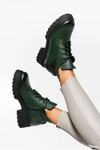 Zielone botki skórzane damskie model 60483 zostały wyprodukowane w Polsce z najlepszych gatunków skór. Ręczne wykonanie butów gwarantuje doskonałą jakość i d...