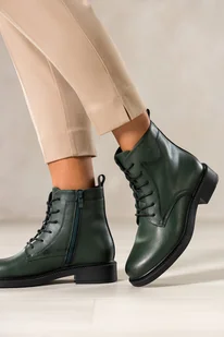 Zielone botki skórzane damskie Sergio Leone na szerokim klocku ozdobna podeszwa sznurowane YG74827-H
