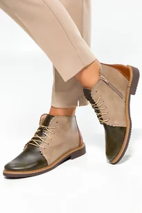 Zielone botki skórzane damskie z ozdobnymi wycięciami sznurowane PRODUKT POLSKI Casu 4078-HOGL EVA-36